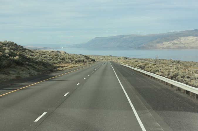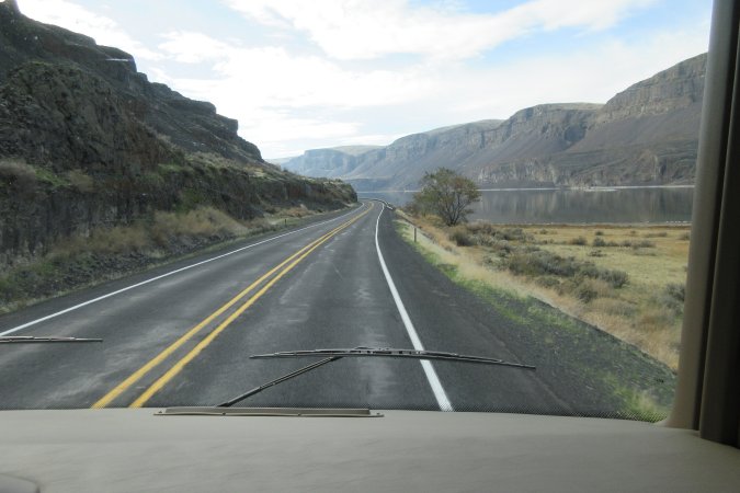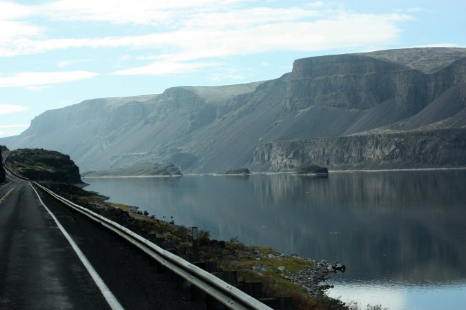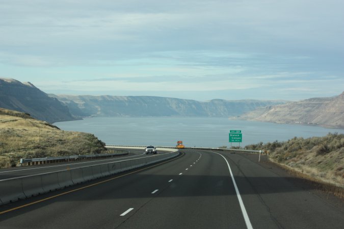 After the Dry Falls, we drive by Lenore Lake. Hwy 17 is not very