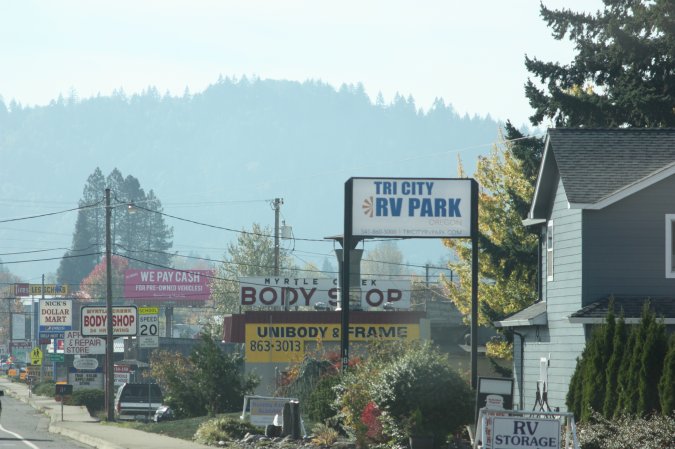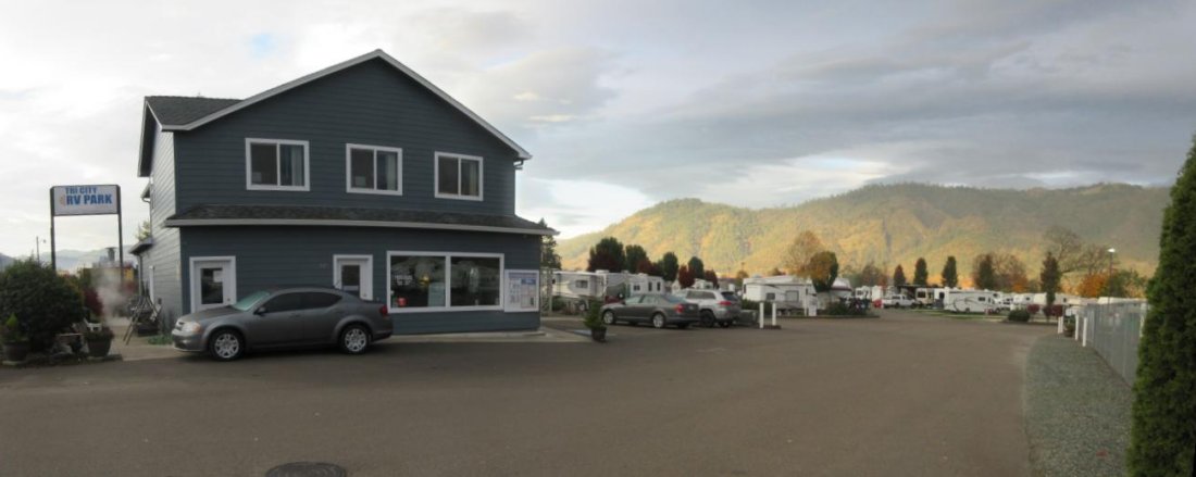Our RV park is in the Tricity section of the village of Myrtle Creek.