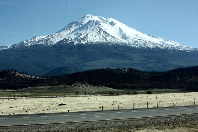 photo, you can see a snow capped mountain. It is Mount Hood at