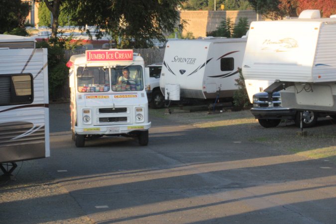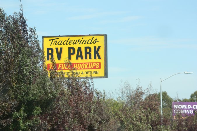 Our next RV park is 20 km off the I-5, but at $20 per night, why not