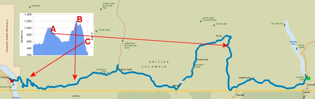 We arrived in Christina Lake right at the bottom of the Paulson summit.