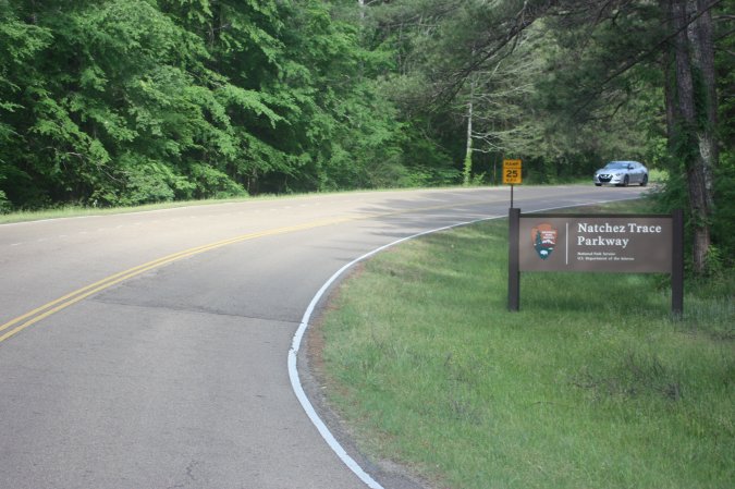 The speed limit on the Trace is 50 MPH, we are driving only 45