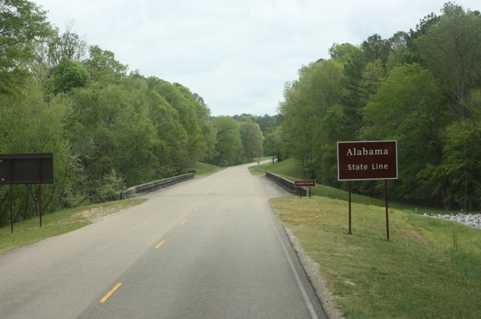 90 kilometers later, we cross into Alabama and still on the Natchez
