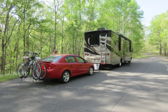 The MH is ready to travel, once out of our spot, we hook up the car to