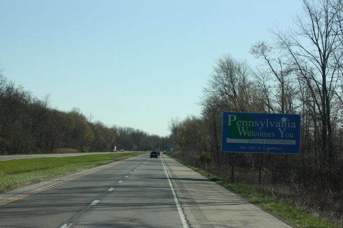 Shortly after we got on I-90, we entered Pennsylvania.