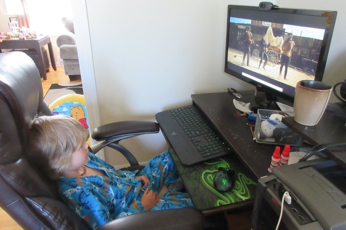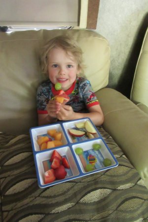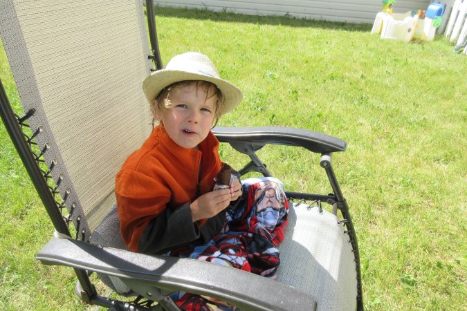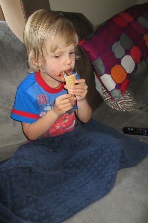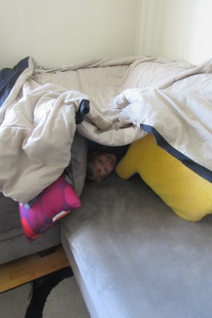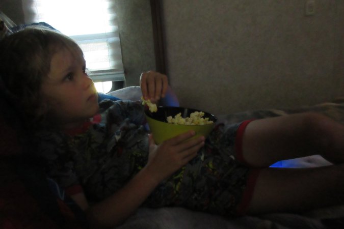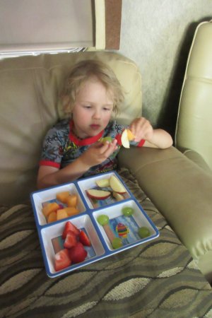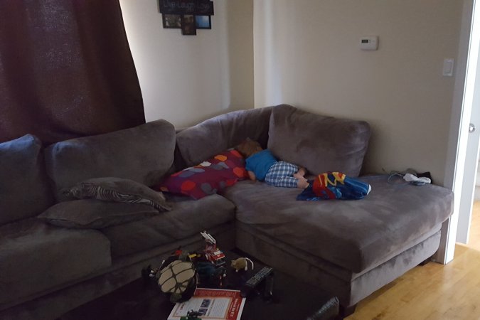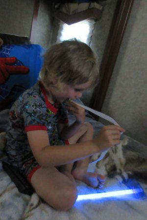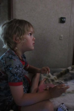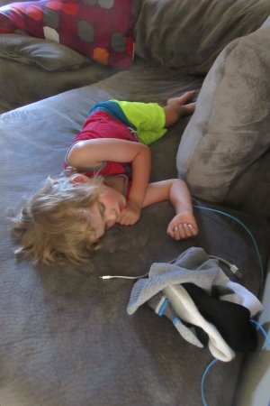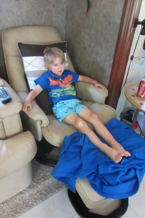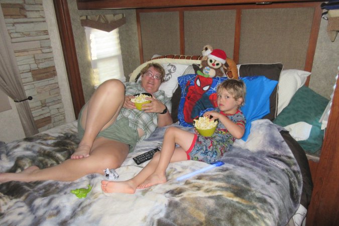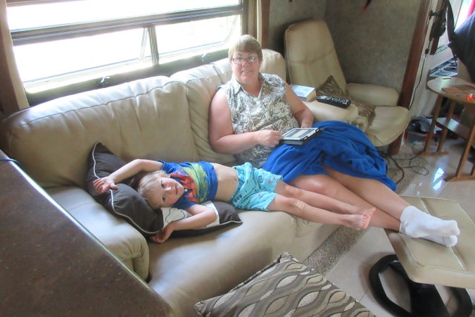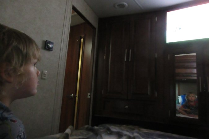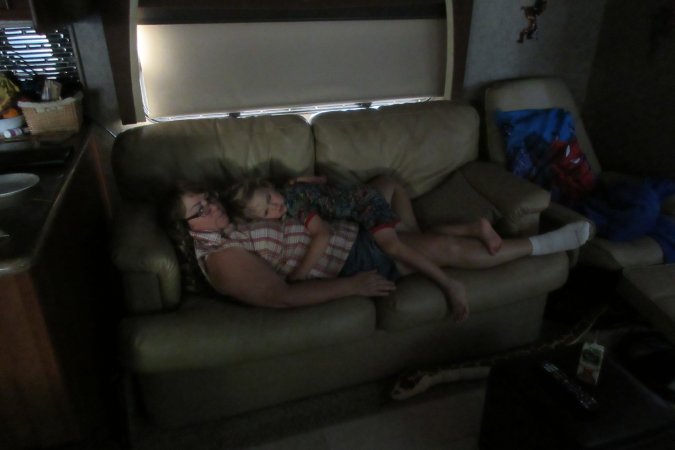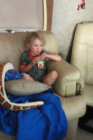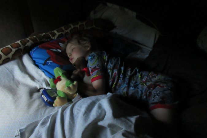 Gabriel is sleeping in the MH. He sleeps first in our bed