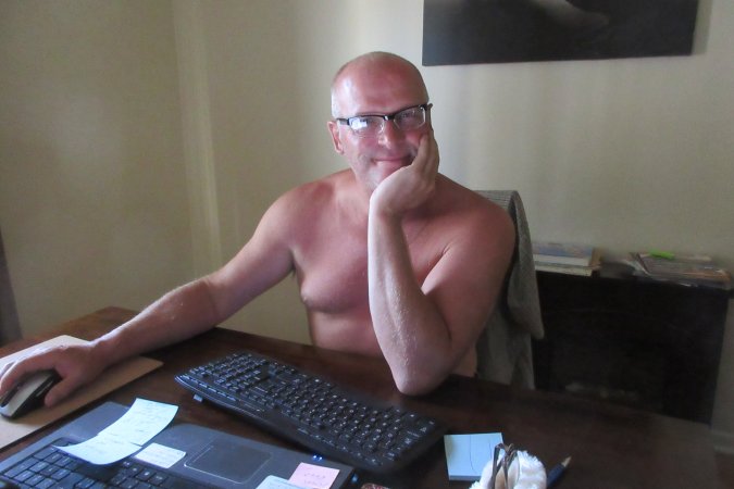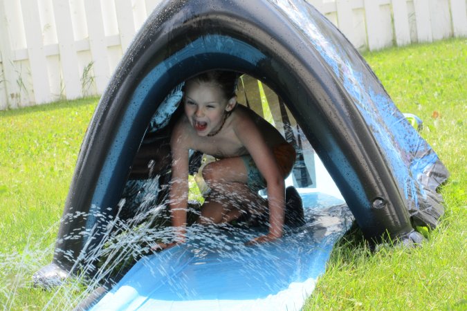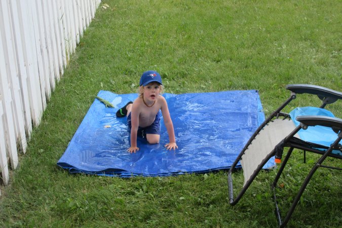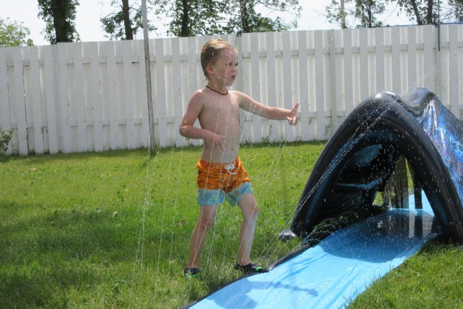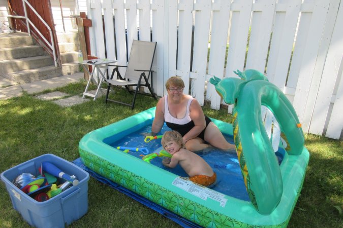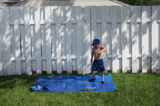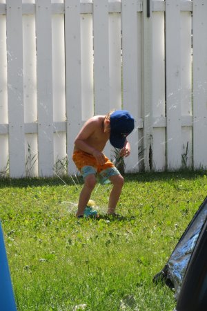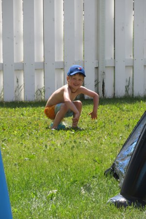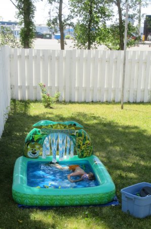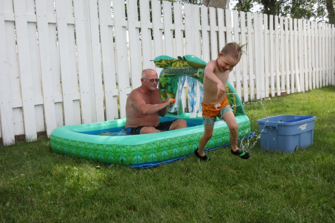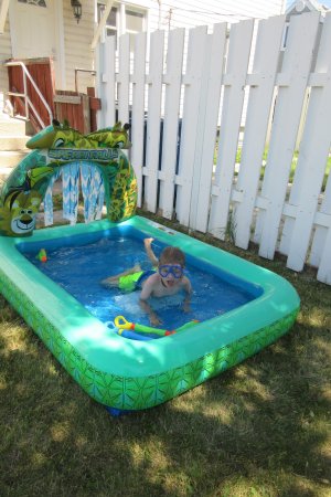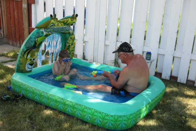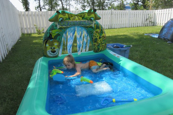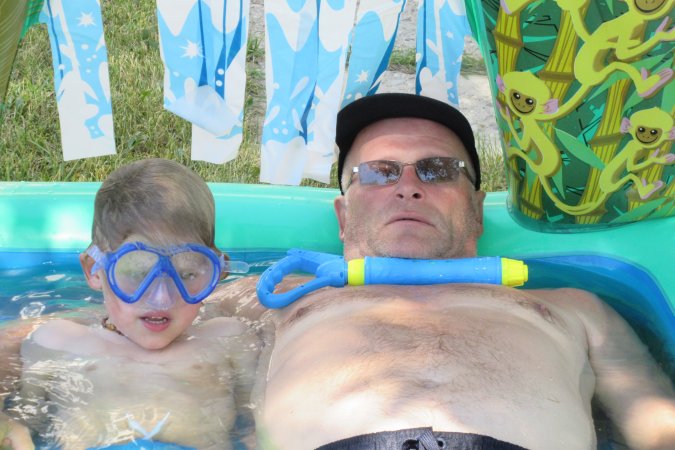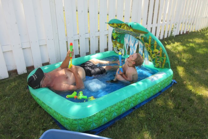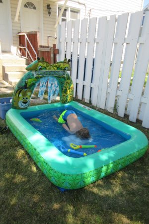 Gabriel comes to the pool to warm-up, but I chase him away.