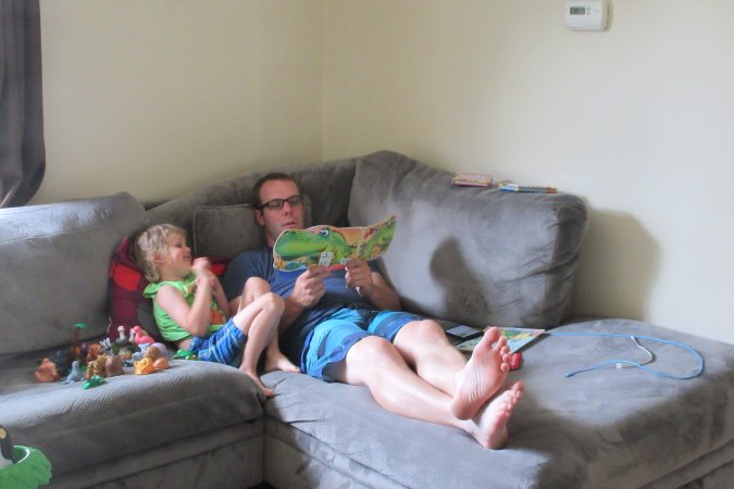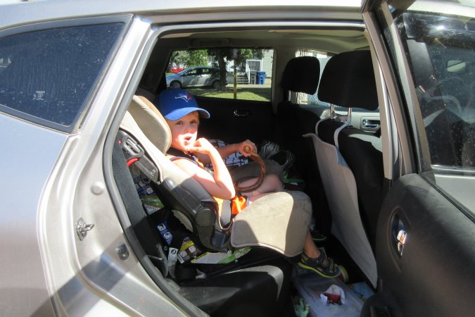 Our car is still at the dealership. We borrowed Jeremy's car to