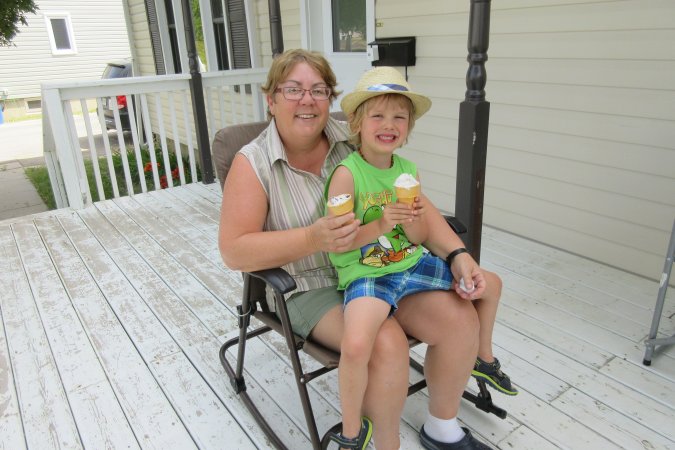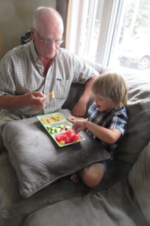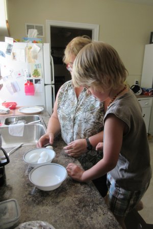 Grand-maman and Gabriel are preparing the boiled eggs to make egg
