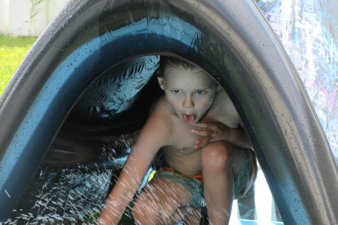 Gabriel is hiding in the tunnel, but the water is so cold.