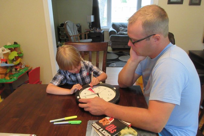 early. If the hour needle is in the red, Gabriel can go pee, but