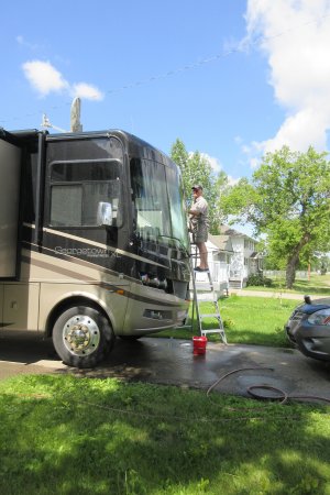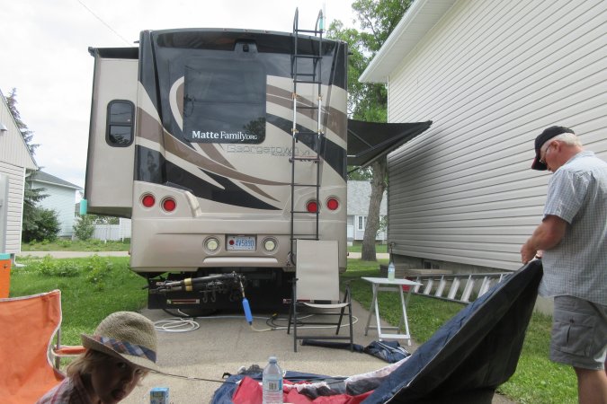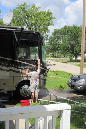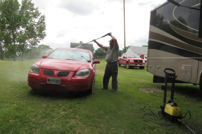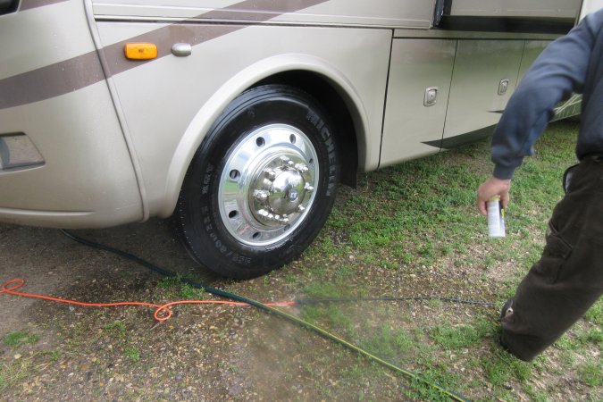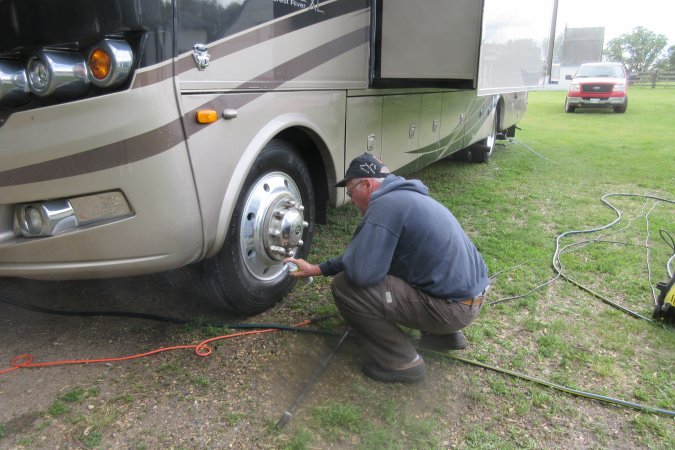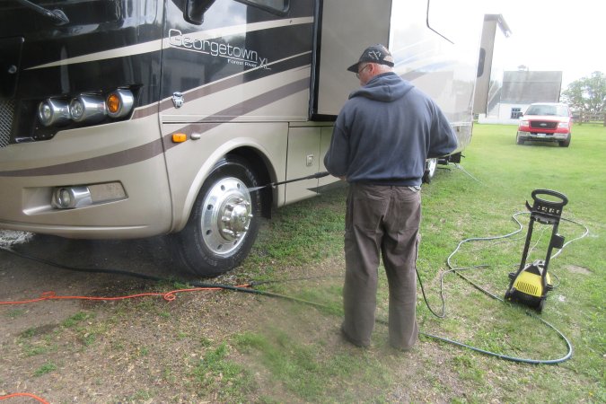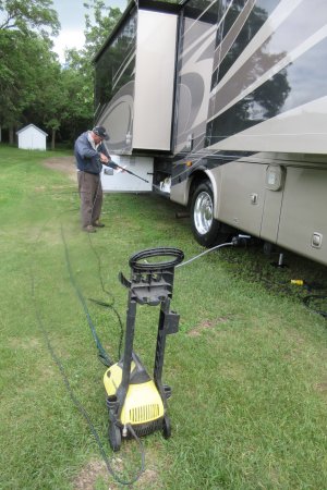 Robbyn has a pressure washer and I am using it to clean the wheels of