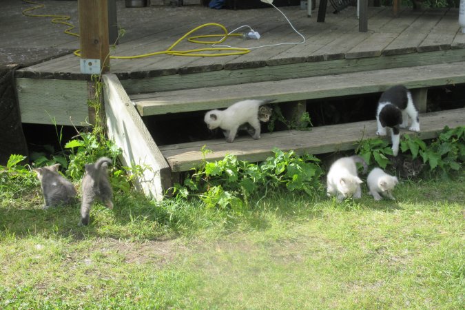 Robbyn has 3 cats and they each had 4 or 5 kittens each...