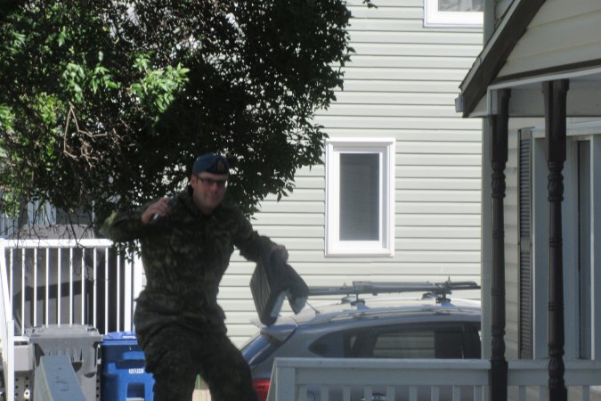 Jeremy arrived a little later. Gabriel is getting the posts ready
