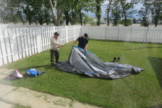 I put up one of Jeremy's tent to make sure no holes have appeared
