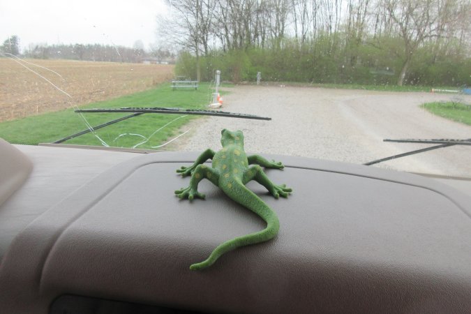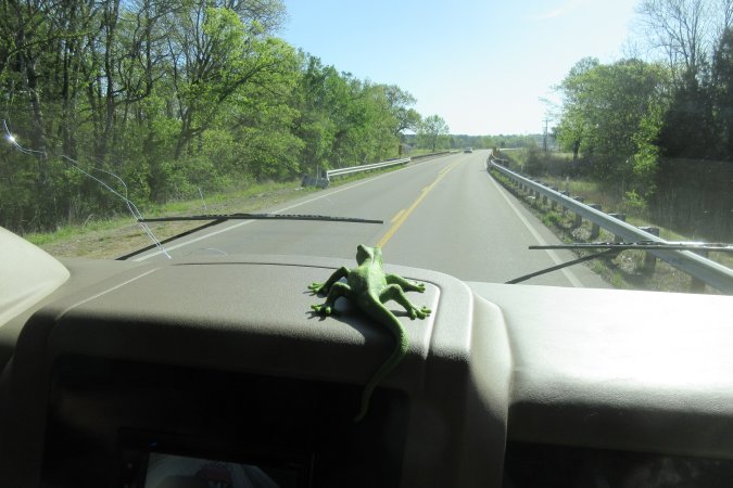 Gabriel's lizard keeping an eye on the road.