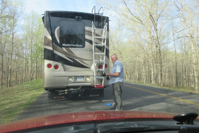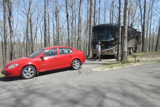 Back at the MH, we hook up the car to the MH and head back on the
