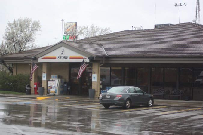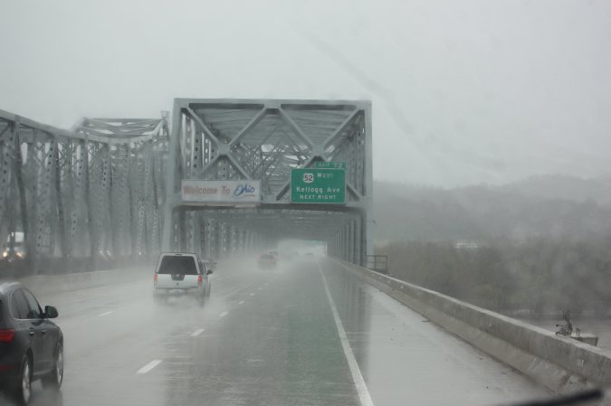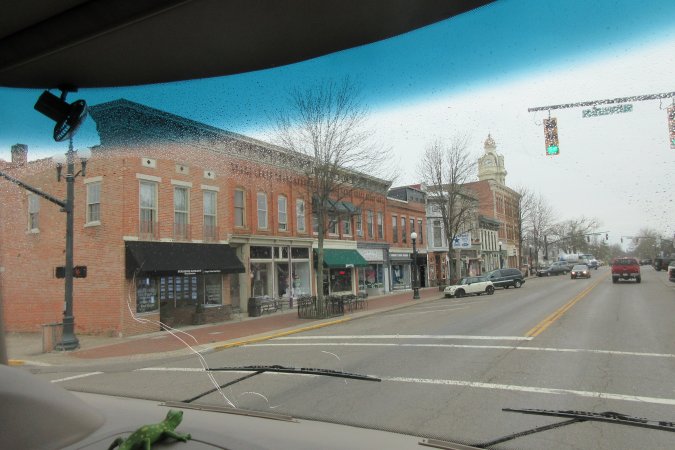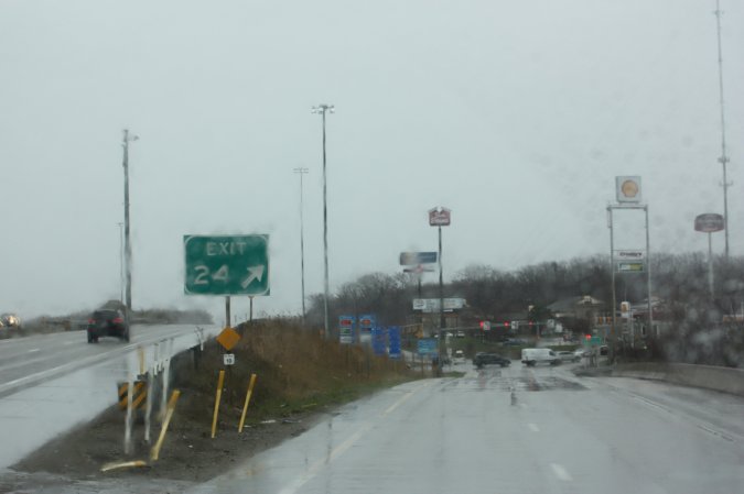 Back on the road and the rain. We got off the interstate near