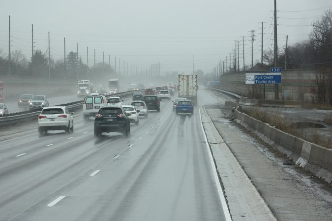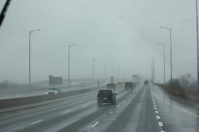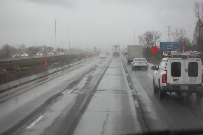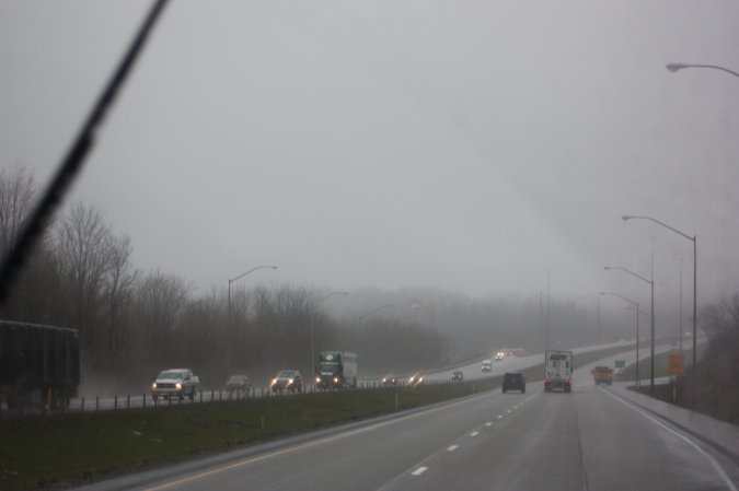 We are now on the QEW and the rain starts again.