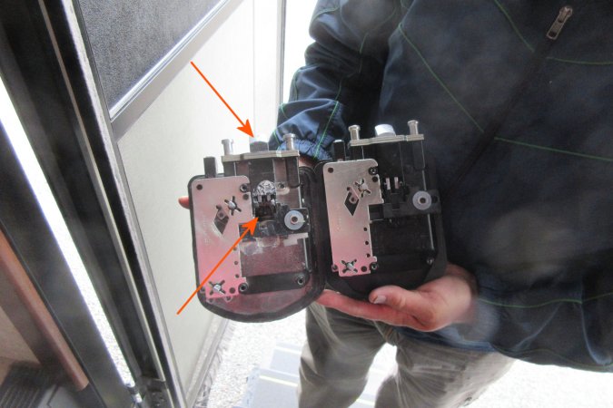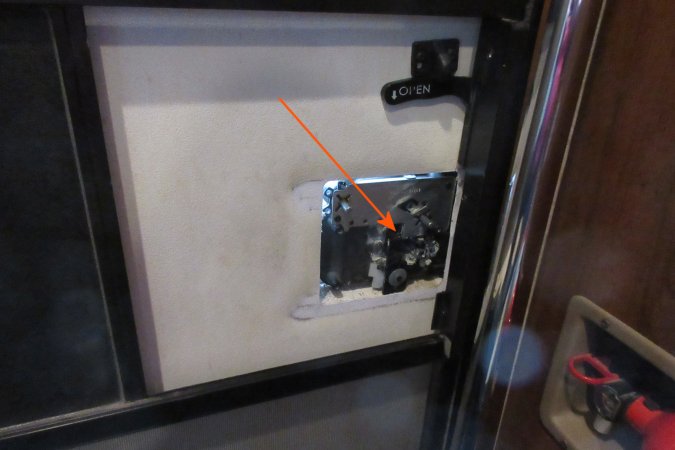 arrows point to the latch that no longer move and the second to the