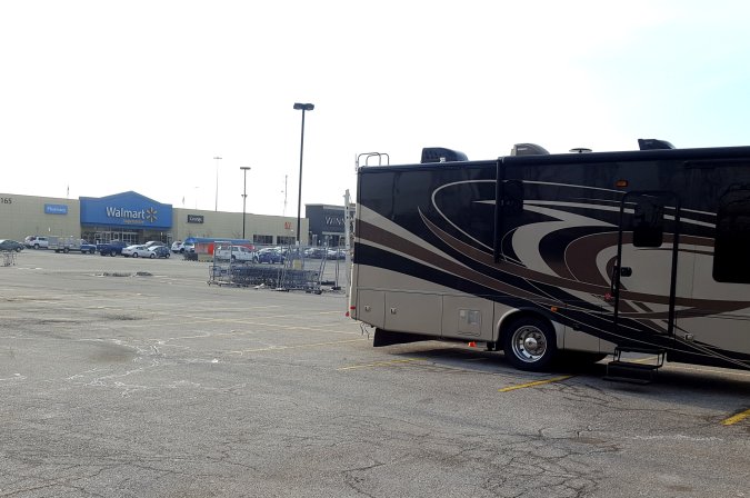 We are spending the night at the local Walmart.