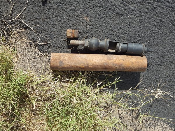 black pipe and the black pipe is in the rusted pipe and held with
