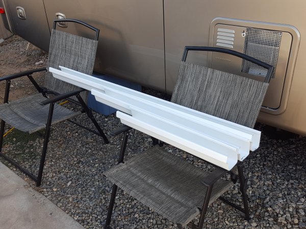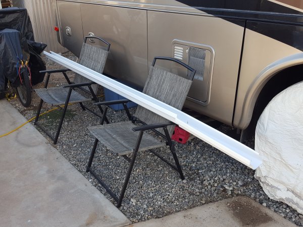 So, I cut the rain gutter into three sections. One of five feet, one of three feet and one of two feet.