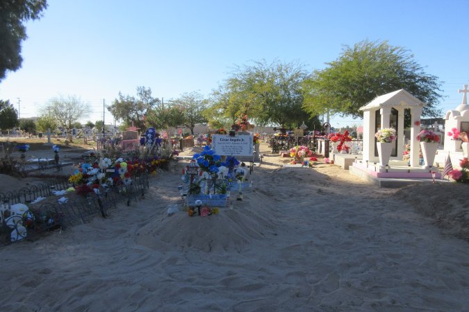 So far, we found four out of five caches. The next caches were in one of the Yuma cemeteries.