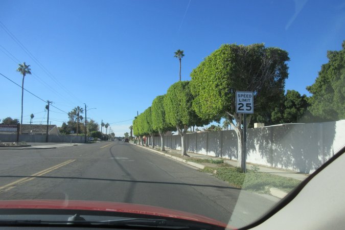 Michele is always impressed by the look of the tree by the road. So square and neat looking.