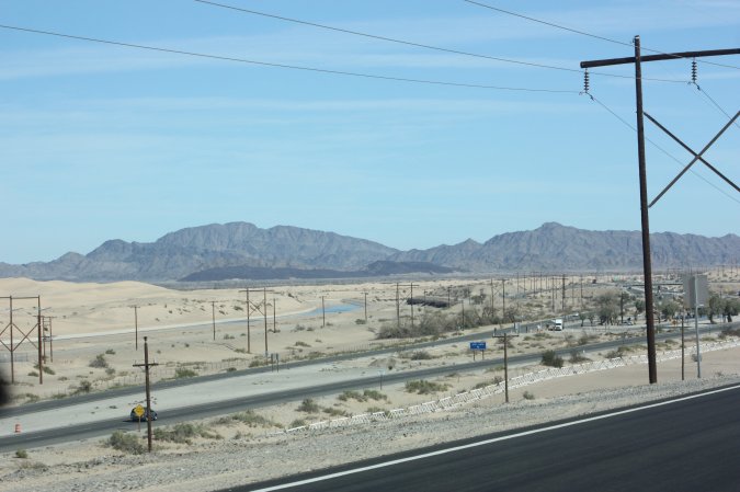 From the Interstate we can see part of the wall between the U.S. and Mexico.