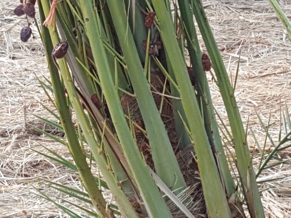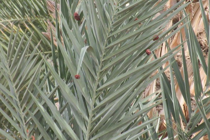 A few dates fell from the palm and embedded themselves on the spikes.