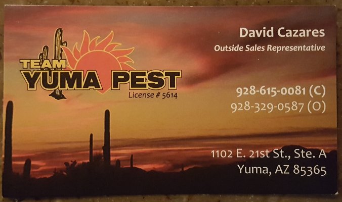 We also stopped by Team Yuma Pest to buy some strip of "Bird-B-Gone" to