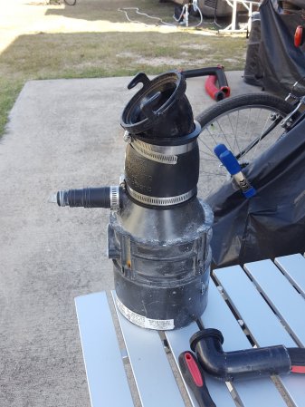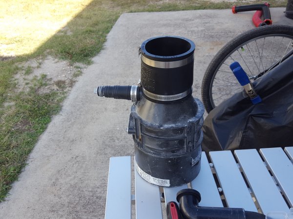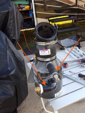 Next I installed the garden hose adapter (left arrow) to allow me to