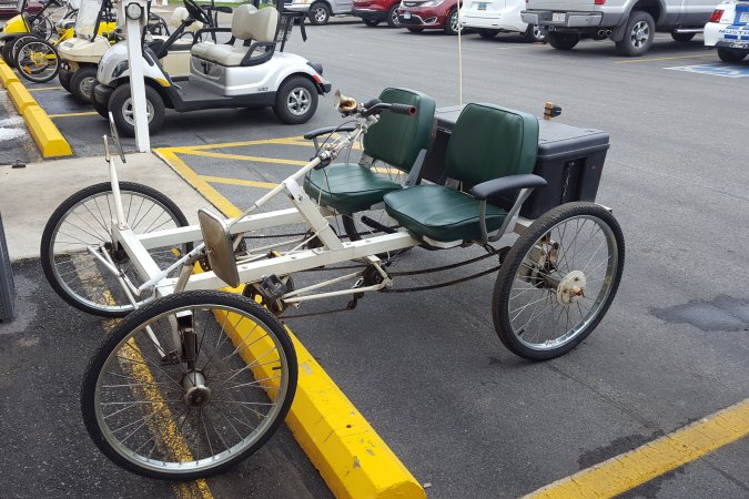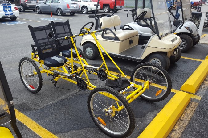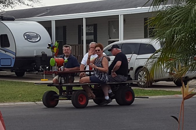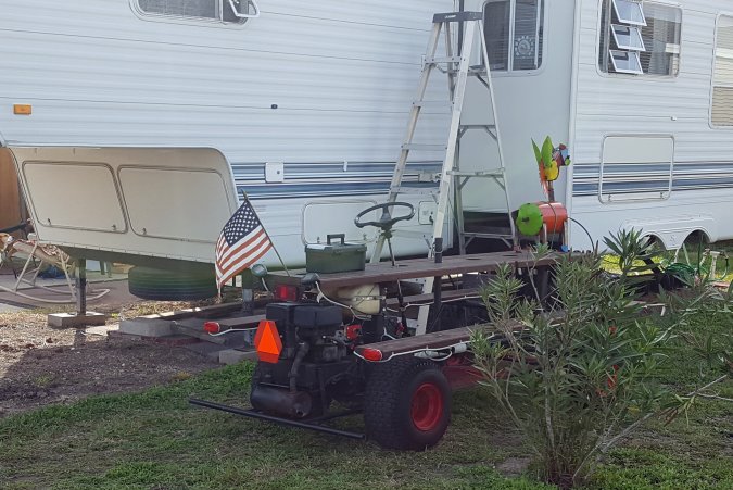During my daily bike ride in the RV Park, I came across this weird contraption. It is a motorized picnic table.