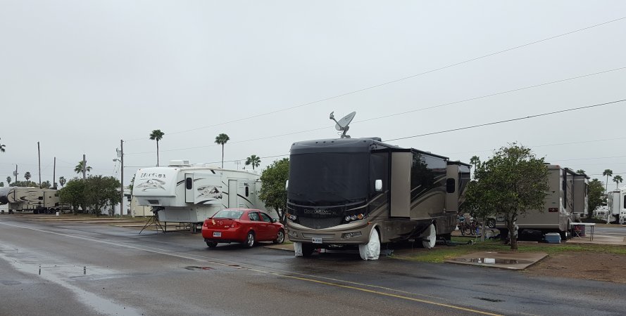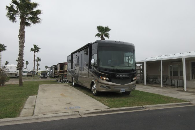 The Alamo Palms was built in 1972 and it shows with the RV lot size, small!