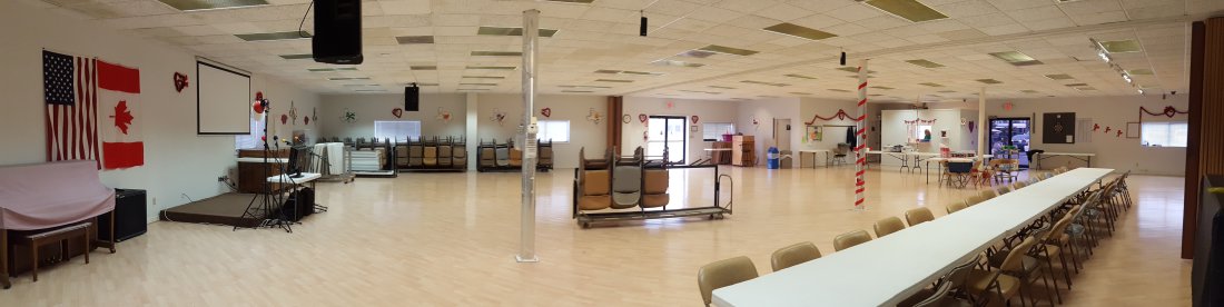 office, postal box, kitchen, bingo, stage with dance floor, pickelball