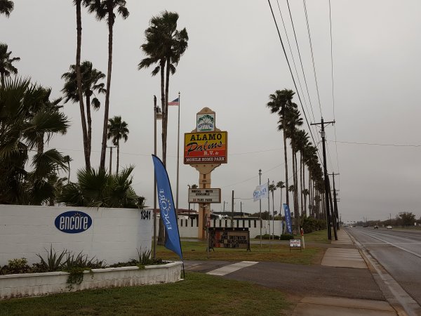 53 km later we arrive at the Alamo Palms RV Resort in Alamo.