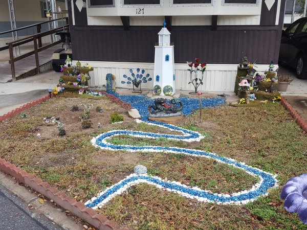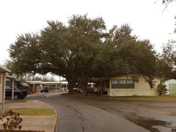 This is the mobile homes area. The live oak are so big. Many of the mobile homes have nice front yards.