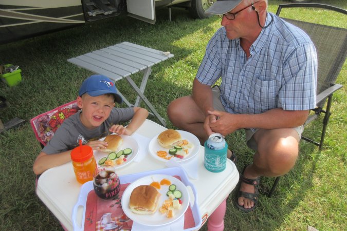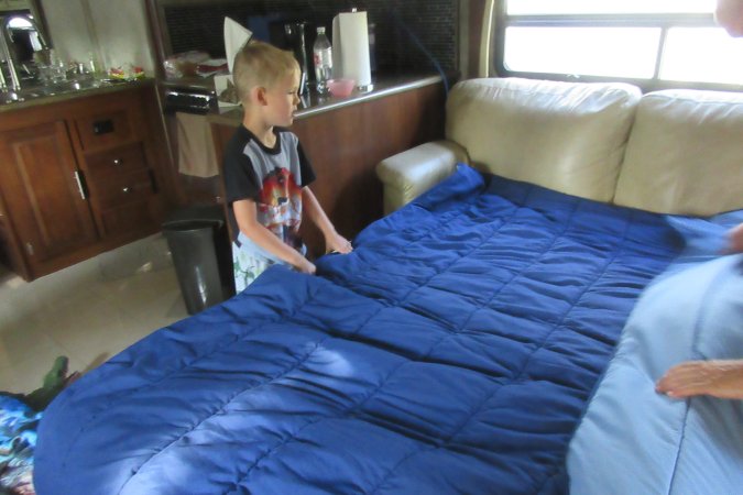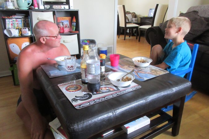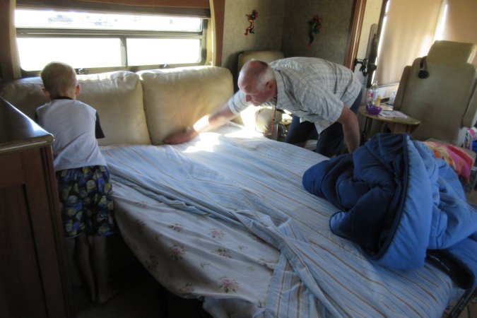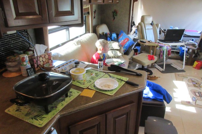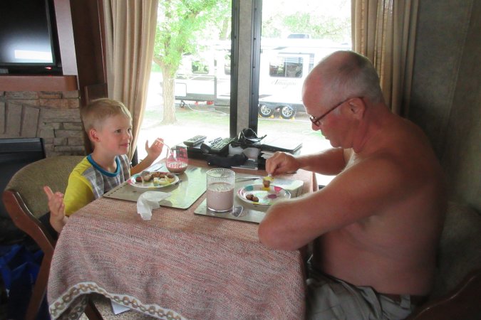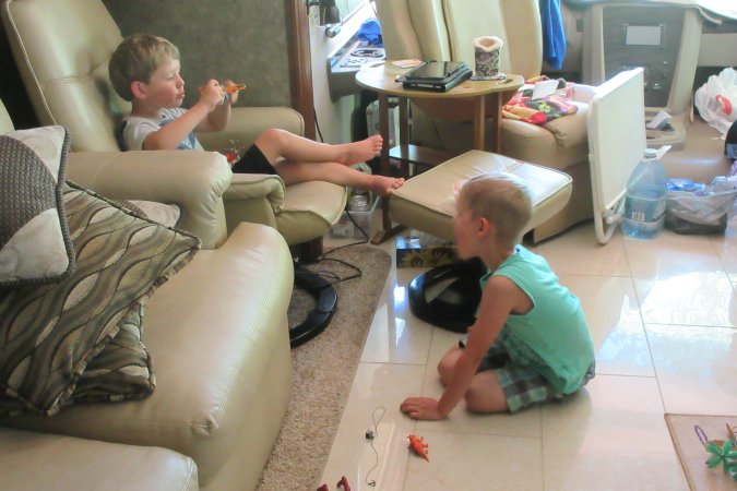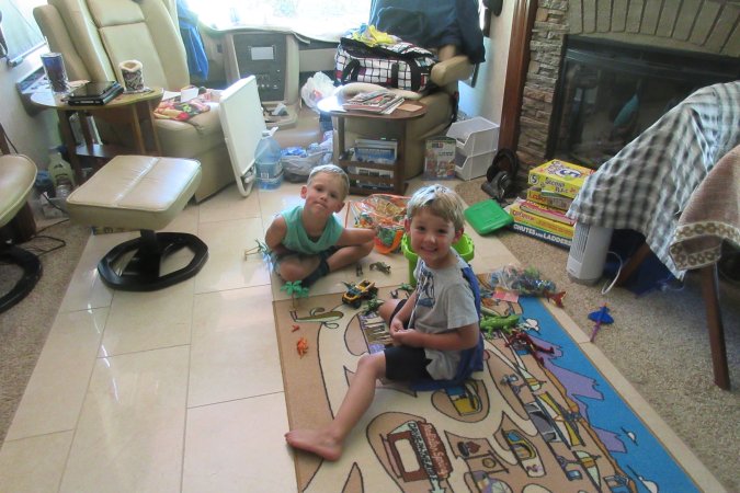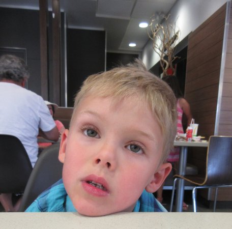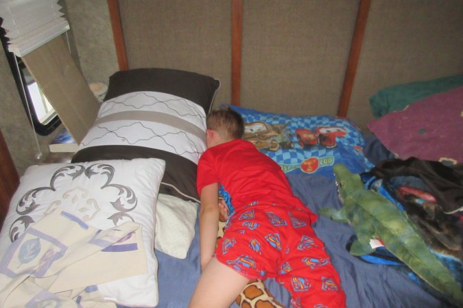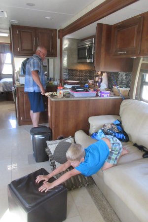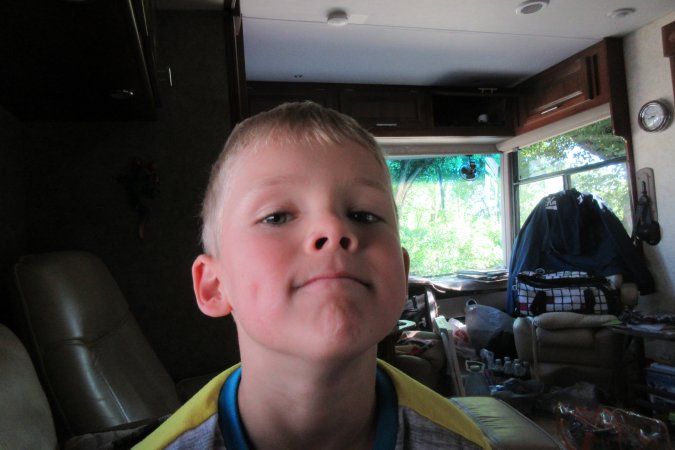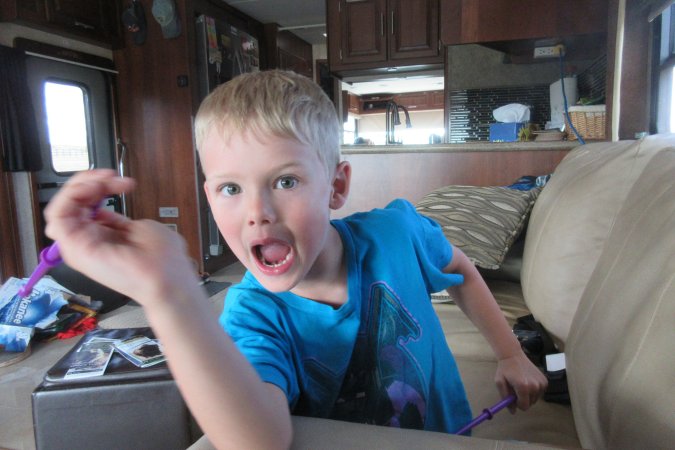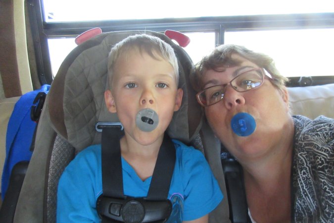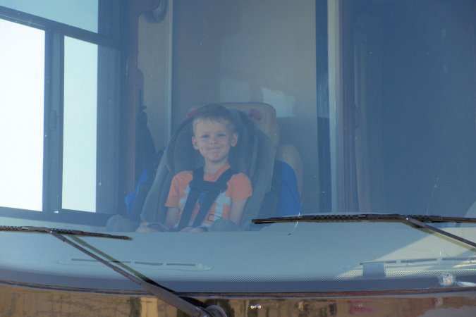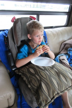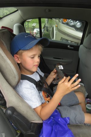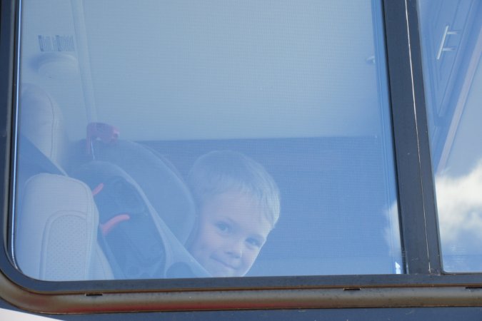 Poor Gabriel, he went late to bed and we woke him up early this morning. It is time to hit the road and get back home.