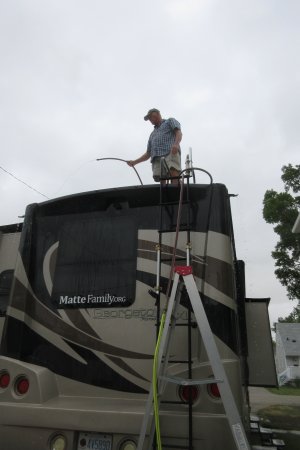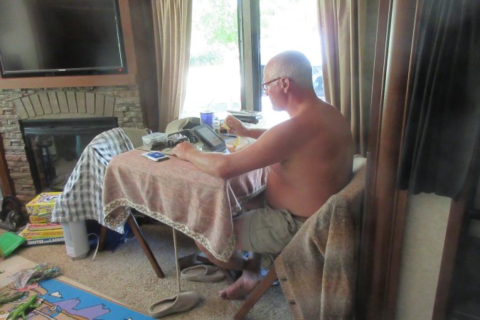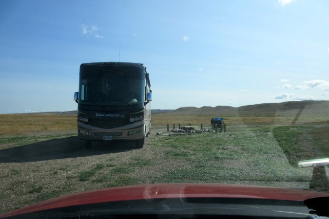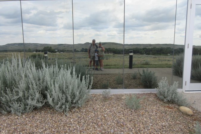 The windows are also mirrors. Our campground is located behind us in the valley.
