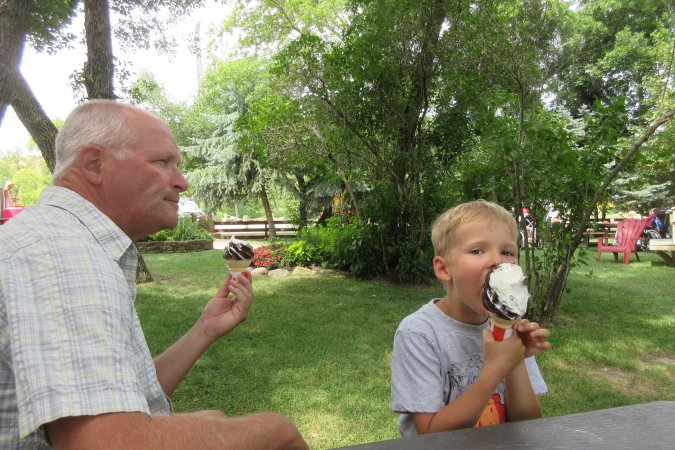We made a stop in Swift Current and bought some peanut and caramel ice-cream cones for the road.