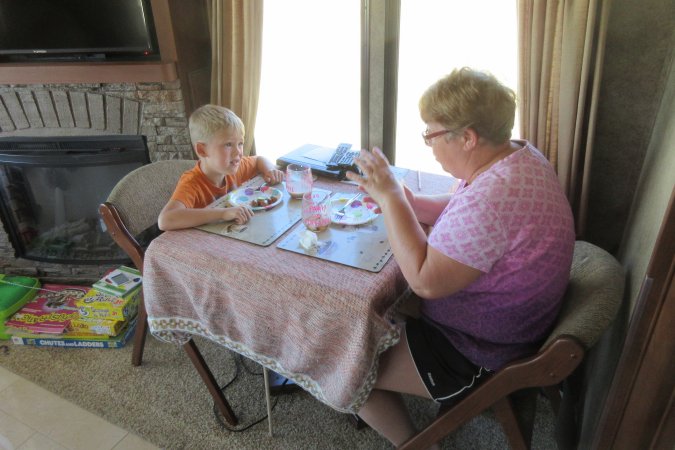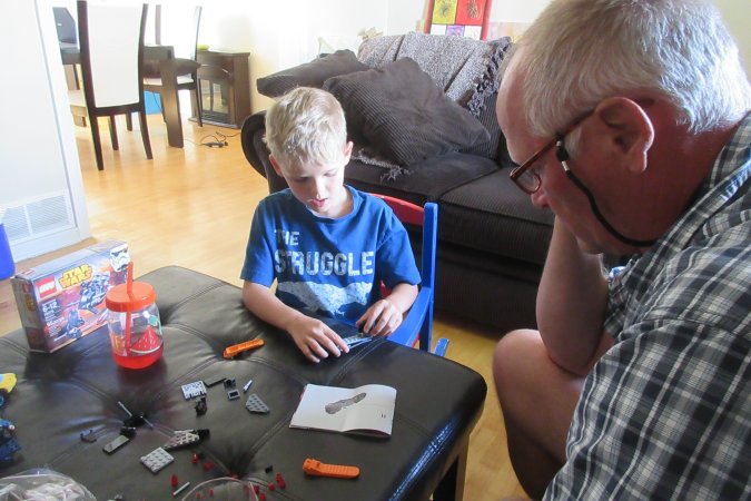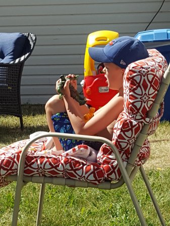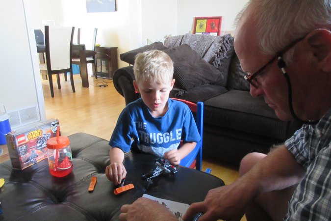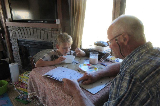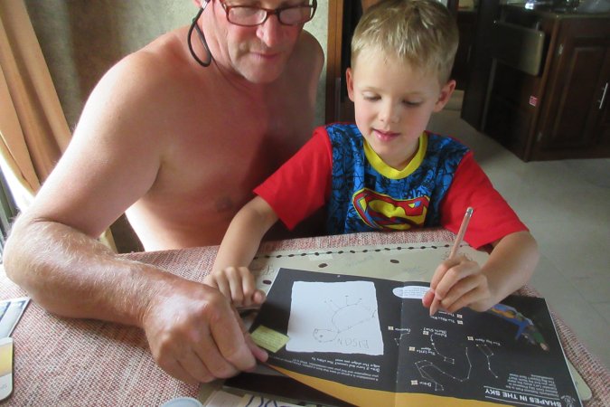 Grand-Maman and Gabriel reading some stuff about snakes. Gabriel
