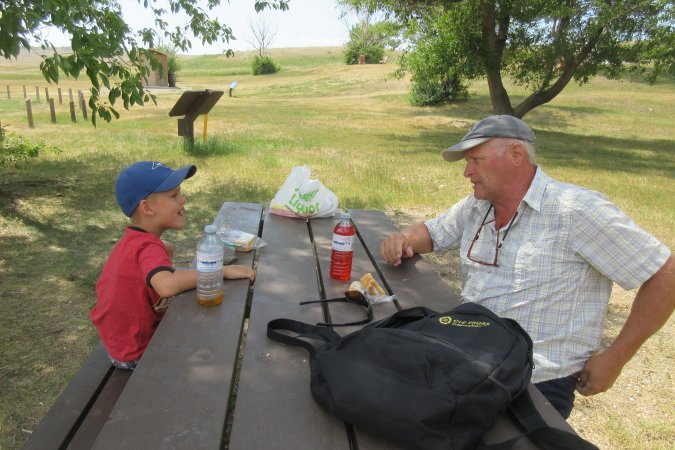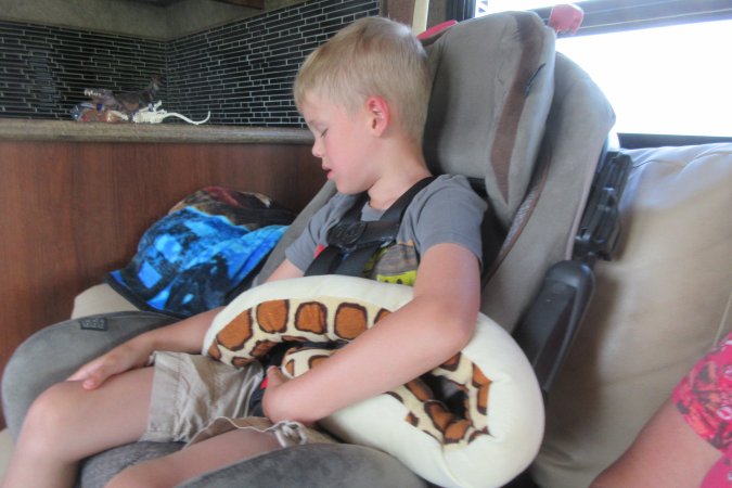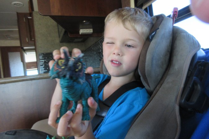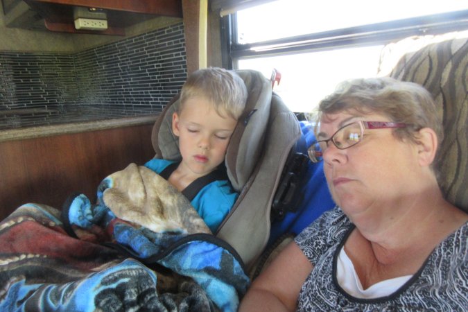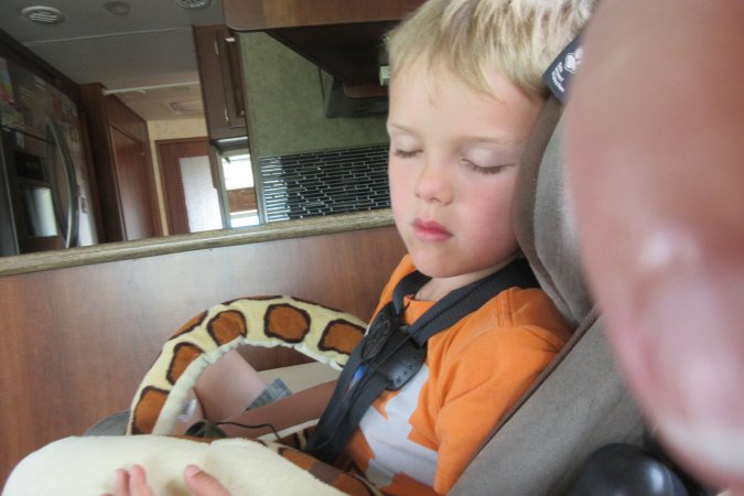 After all this, we got back on the road and headed to Eastend. Gabriel could not resist a nap.