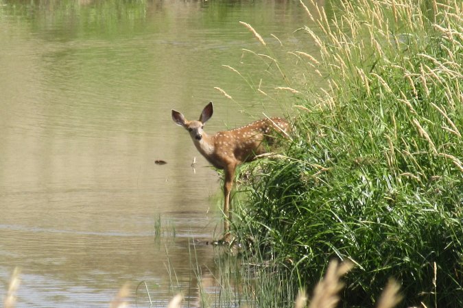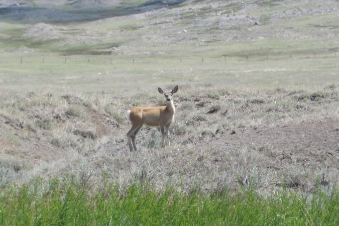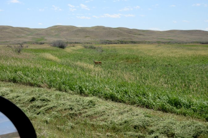 Gabriel's hawk eye saw a deer in the field, I had to back up to confirm and sure enough, there it was.