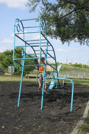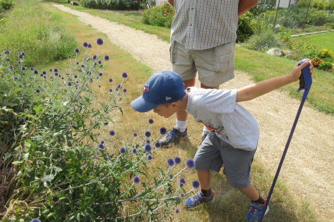 We decide to do the kids geocaching. It is three things he has to find to complete a quiz for a prize.