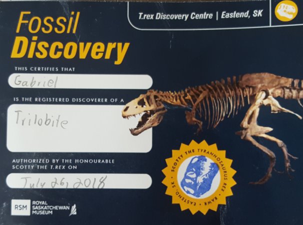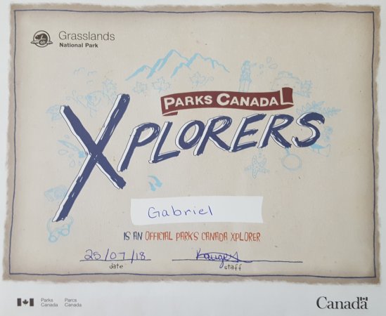 Gabriel received two "dog tags" from Grassland N.P. and a signed certificate from Park Canada.