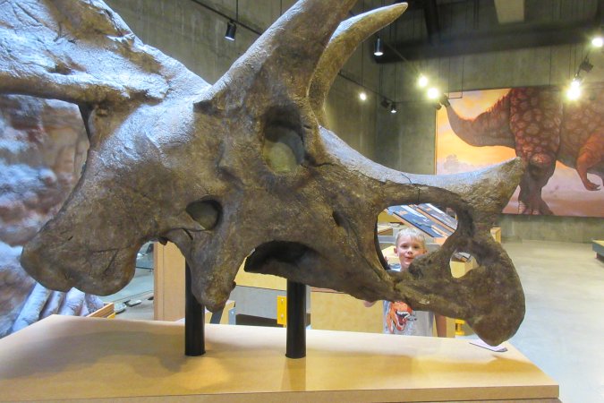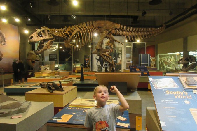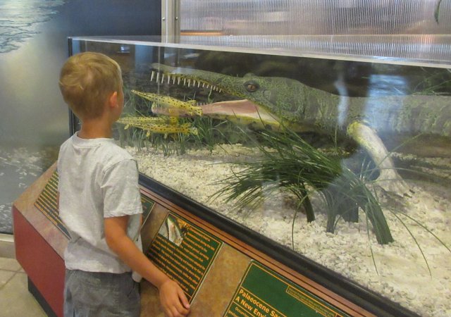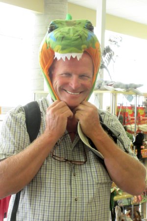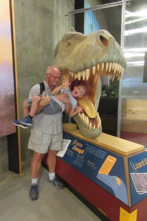 Gabriel was not too sure about his head in the mouth of the T.rex...