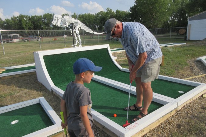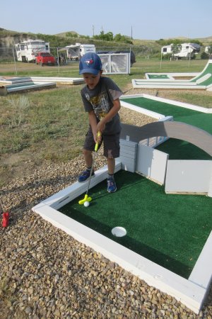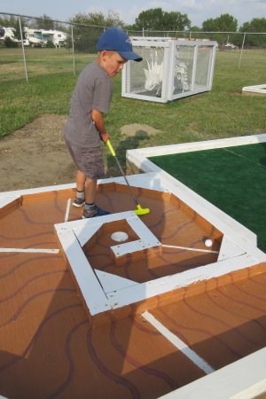 The mini-golf opened right at 6 pm. We all had to play a game.