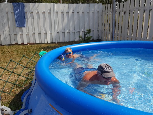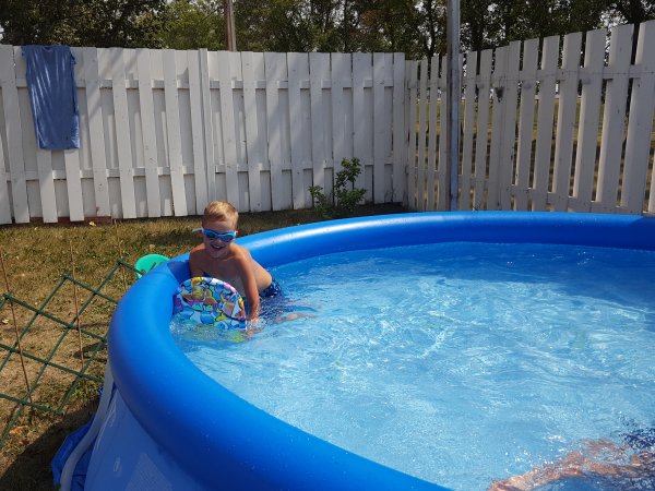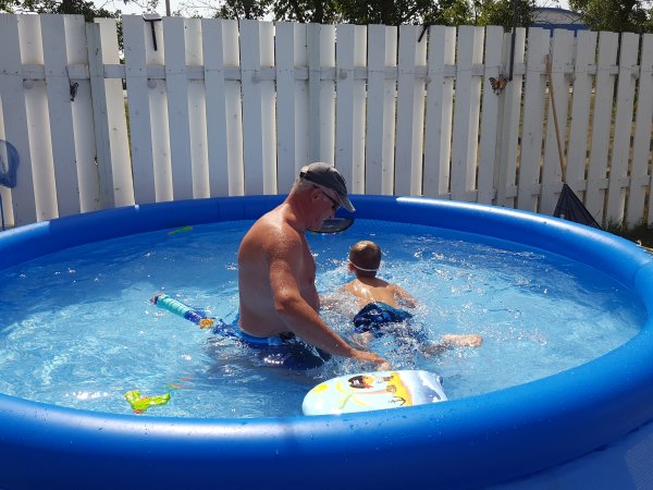 trunk and joined Michele and Gabriel in the pool. The water is so