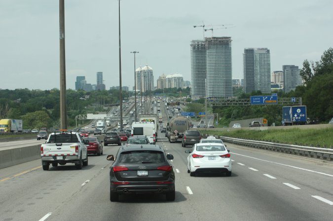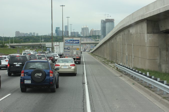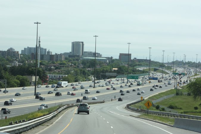 Arriving in Toronto, the traffic is a little heavy, but moving well on the 401.